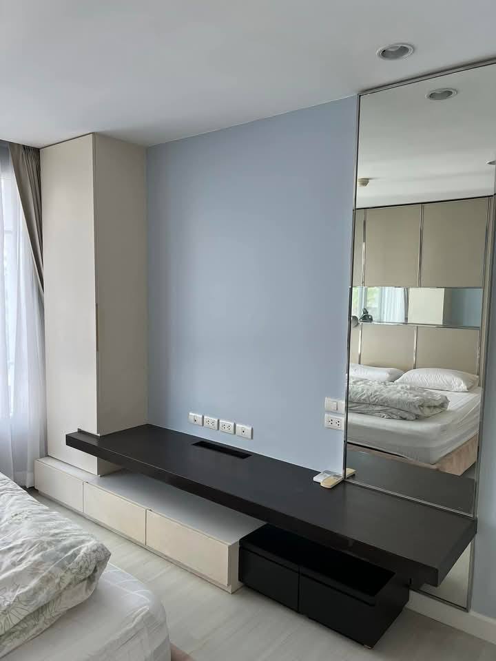 – เฟอร์นิเจอร์ แบบ บิวด์ อินครบ ทั้ง เตียง ตู้เสื้อ ชั้นวางทีวี และตู้ติดผนัง